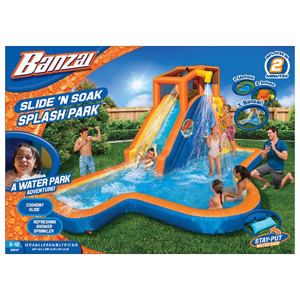 READ NOTES BANZAI Slide 'N Soak Splash Park Climbing Wall ... from the-nr-group-inc.s3.amazonaws.com Hoolro water slip and slide for kids and adults with surfboards, 16 foot outdoor water toys backyard garden racing lanes and splash pool (16 ft × 4.6 ft) 4.1 out of 5 stars 33 $39.99 $ 39. Cushioned slick slide lagoon style splash pool; Wderni slip and slide, 15.7 ft water slide for kids adults, slip n slide with 2 surfboards, outdoor waterslide with crash pad and splash sprinkler, summer water toys for backyard outside 4.0 out of 5 stars 362 May 12, 2021 · ariel inflatable lagoon splash pad and sprinkler for kids, $49.99 shop disney. Press pad for a surprise blast; Banzai splash 'n slide sprinkler park lets you have the ultimate summertime backyard block party; This item ships in its original packaging. Make a splash with this banzai slide 'n soak splash park.